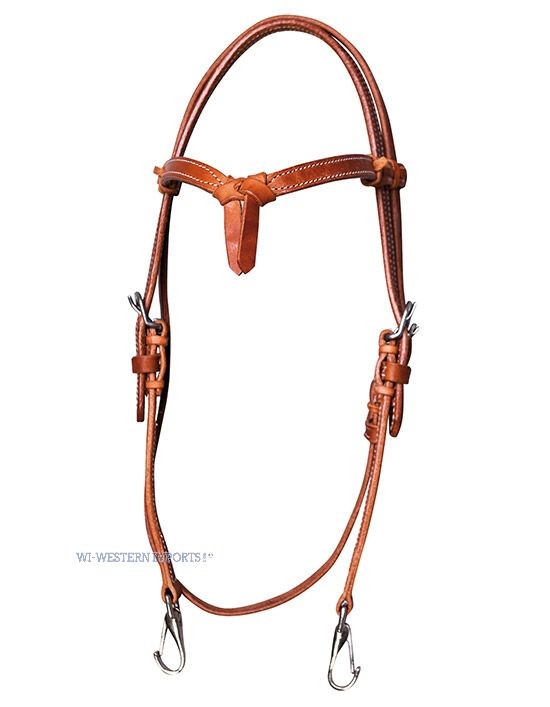 Ogłowie wykonane z wytrzymałej amerykańskiej skóry jeździeckiej. Z zatrzaskami do szybkiej wymiany wędzidła.