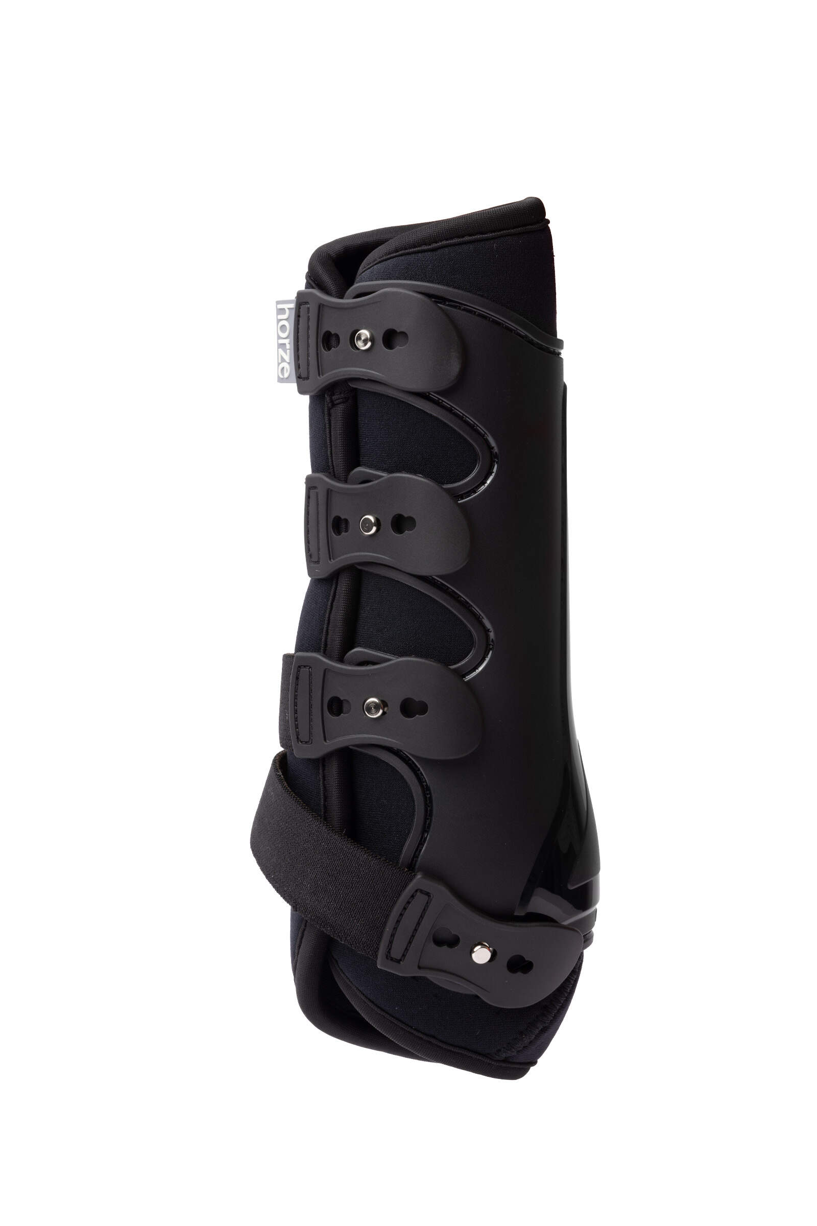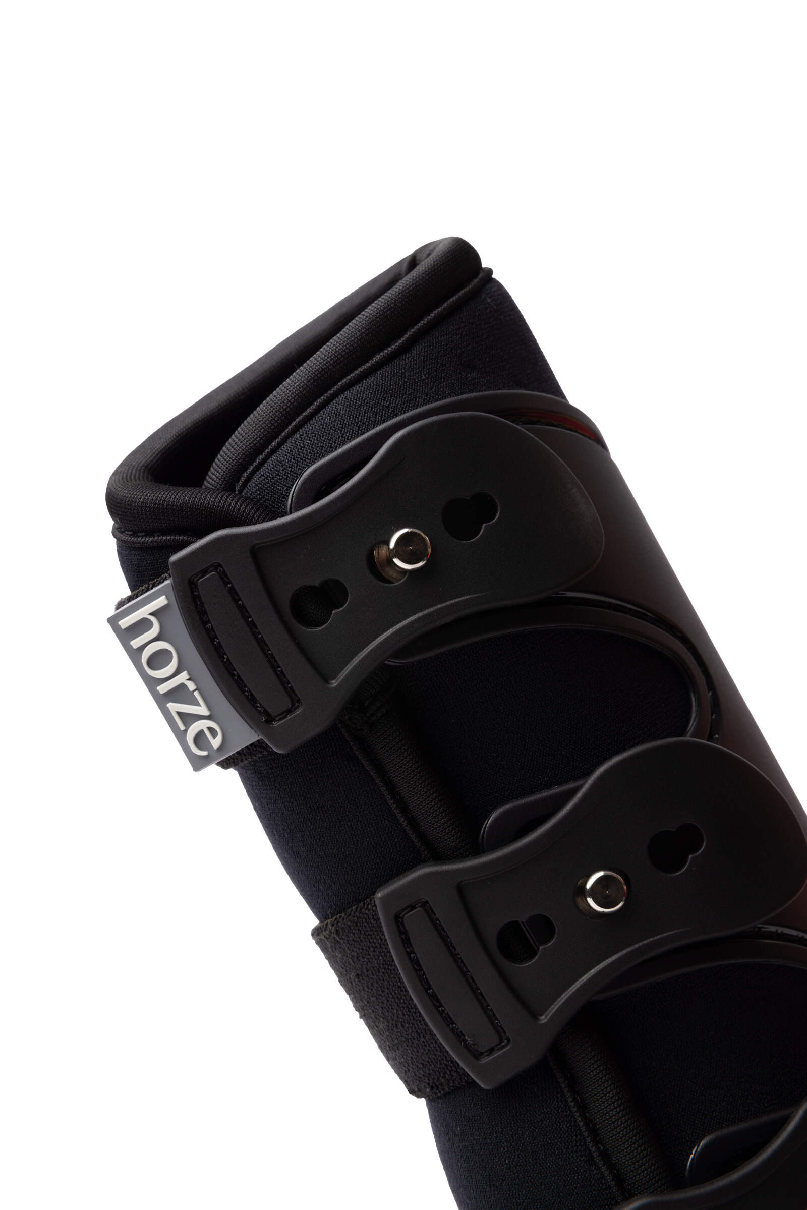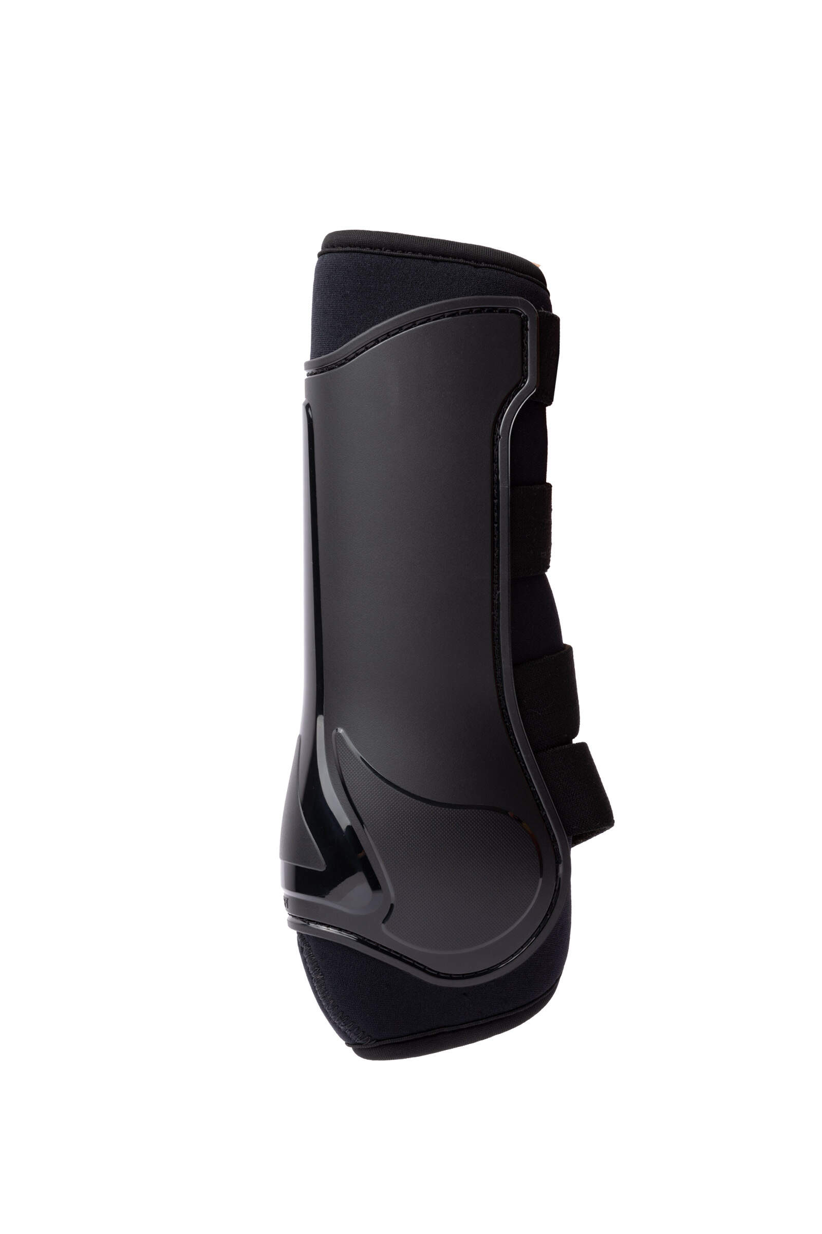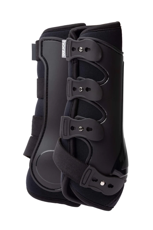 Te ochraniacze łączą funkcję ochraniaczy skokowych i ochraniaczy ujeżdżeniowych, zapewniając wszechstronną ochronę dla Twojego konia. Cztery podwójne elastyczne paski z klamrą i zapięciem na bolec gwarantują bezpieczne i regulowane dopasowanie. Ukształtowany, perforowany neopren z podszewką zapewnia optymalną oddychalność i odprowadzanie wilgoci. Miękka wyściółka i materiał amortyzujący wstrząsy gwarantują najwyższy komfort i ochronę. Łatwe w pielęgnacji i szybkoschnące, idealne do codziennego użytku.