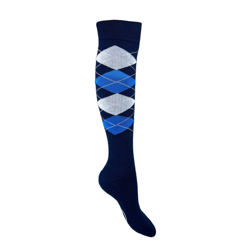 Podkolanówki York Karo granatowo-niebieski