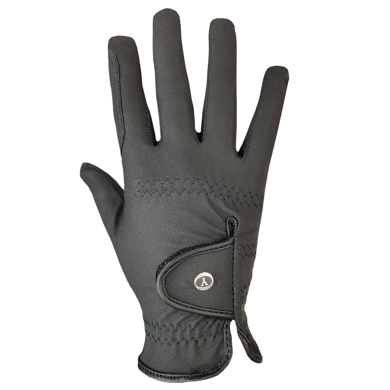 - wygodne rękawiczki jeździeckie wykonane z materiału imitującego skórę